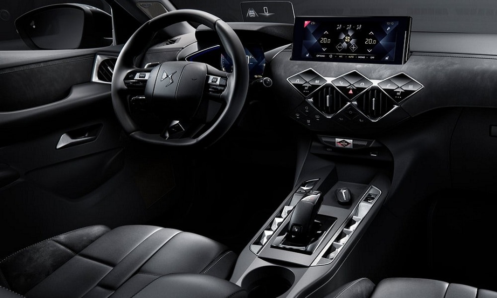 Kabina DS 3 Crossbacka to stylistyczny majstersztyk. Dominuje typowy dla marki motyw rombu, którego kształt mają m.in. nawiewy klimatyzacji i umieszczone nad nimi przyciski oraz skórzane przeszycia na desce rozdzielczej. Nietuzinkowo wygląda także dźwignia automatycznej skrzyni biegów oraz umieszczone obok niej przyciski, które wyglądają jak kryształy. Podobne rozwiązania znalazły się w DS 7. Centralne miejsce kokpitu zajmuje 10,3-calowy ekran systemu multimedialnego. Drugi wyświetlacz znajduje się przed kierowcą i zastępuje zegary.