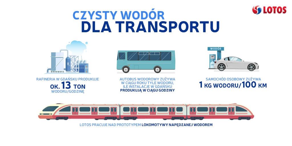 Pierwszy raz wodór będzie można zatankować w bezpośrednim sąsiedztwie gdańskiej rafinerii oraz na warszawskiej stacji paliw sieci Lotos przy ul. Łopuszańskiej. Stacja ta to część Niebieskiego Szlaku, czyli projektu rozbudowy sieci ładowarek dla samochodów elektrycznych i hybrydowych na stacjach Lotos. Pierwsze 12 ładowarek udostępniono kierowcom jesienią 2018 r., kolejne 38 zostanie oddanych do użytku w 2020 roku.