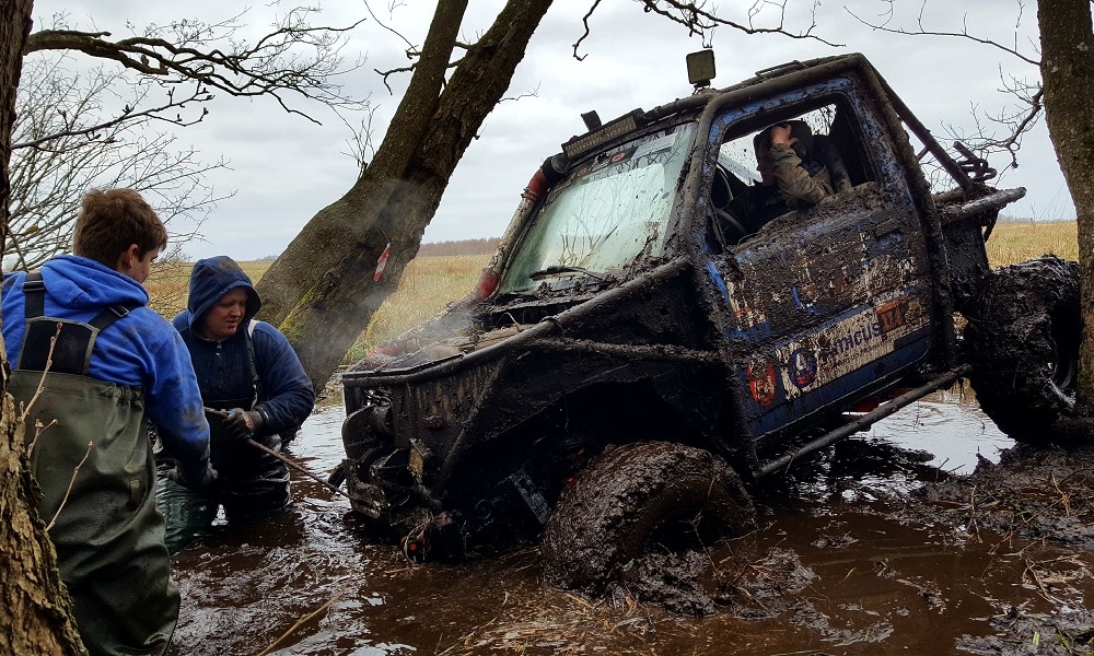 Tym razem Wiosenne Roztopy zostały podzielone na 2 trasy: 1 (60 pieczątek) dla turystyka i 2 (72 pieczątki) dla Quadów, Wyczynu, Adventure i Extreme. Cała impreza zaczynała się czasówkami – także podzielonymi dla poszczególnych klas. Po krótkich rozmowach z innymi załogami jak i własnymi odczuciami śmiało mogę stwierdzić, że warunki pogodowe tego dnia bardzo osłabiały ekipy. Odmarzały ręce, palce u nóg, uszy, dawno nie było tak tragicznej pogody. Trasa dla turystyka była bardzo techniczna, ale miejscami przydawała się wyciągarka, jak opowiedział mój kolega Karol. Ich Nissan Patrol momentami był za duży, pieczątki były w ciasnych miejscach. Za to moja trasa (ponownie jechałam w Extremie) praktycznie w 75% bazowała na wyciągarkach. Mało było pieczątek, które auto było w stanie „zrobić na kołach”. W torfach zmoty zapadały się po maski, ale nie tonęły w bagnach same, piloci także grzęźli po pas w błocie.