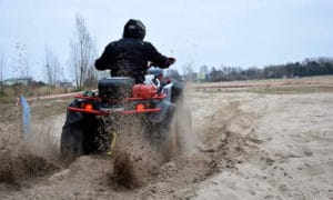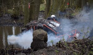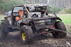 Jest to naprawdę ładna suma patrząc na wysoki poziom i pamiętając o tym, że jechali bez wyciągarki. Mogli jedynie liczyć na pomoc kolegów i własny spryt żeby nie utknąć na dobre. Jak wspomniałam zwycięzcy Adventure, Łukasz i Marcin, również dorobili się swojej awarii. Urwali wentyl od koła, na szczęście szybko znaleźli wulkanizację i problemu się pozbyli. Dzięki czemu wrócili do gry oraz nie oddali tytułu najlepszych innej załodze. W klasie Extreme niestety jedna zmota wróciła na lawecie. Z opowieści innych uczestników usłyszałam, że prawdopodobnie został zalany silnik, ponieważ pojawiła się ogromna chmura dymu. Jednak auto z wody wyjechało o własnych siłach. Chyba jedynie w klasie Quad nie było awarii. Kiedy my tonęliśmy w błocie chłopaki szybko zdobywali kolejne pieczątki. Quady radziły sobie najszybciej z sobotnimi torfami, co potwierdził mi zwycięzca tej klasy Ziemowit. Jechał sam, bez pary, a poziom rajdu ocenił na wysoki, ale i tak poradził sobie bardzo dobrze.