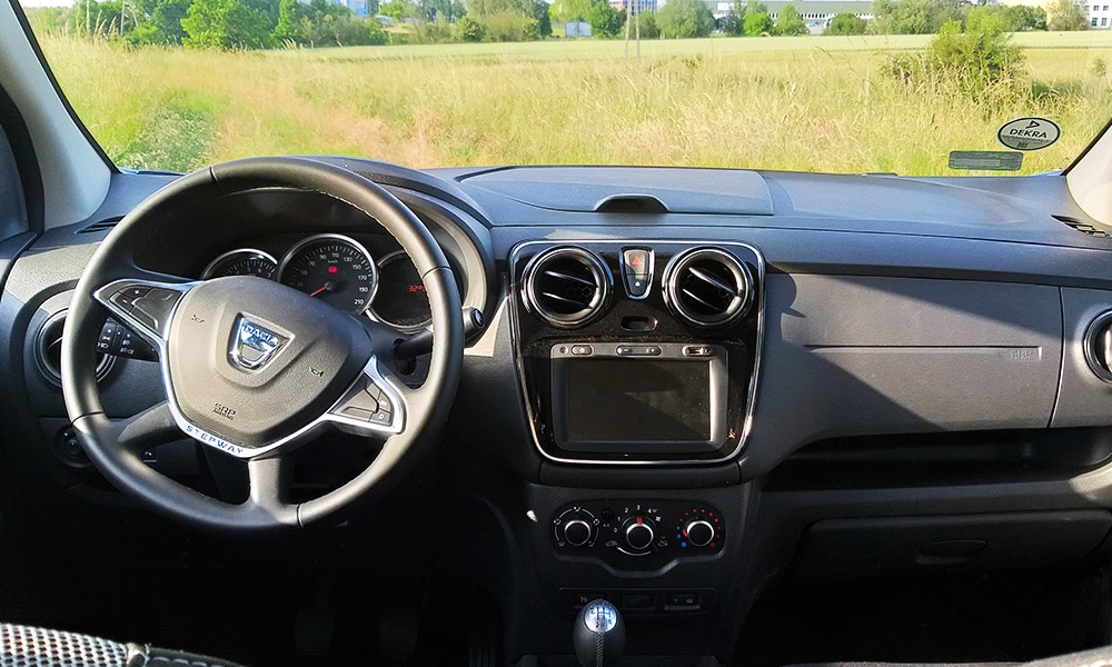 Po kabinie Dacii łatwo można poznać „uroki” taniego auta. Wszechobecny twardy plastik, przeciętne spasowanie i niedopracowana ergonomia to typowe cechy aut rumuńskiej marki. Przykładowo przycisk dezaktywacji systemu Start&Stop umieszczono… pod dźwignią hamulca ręcznego, a przycisk do obsługi tempomatu znalazł się w dolnej części deski rozdzielczej. Pochwalić należy natomiast łatwą obsługę komputera pokładowego i czytelne zegary.