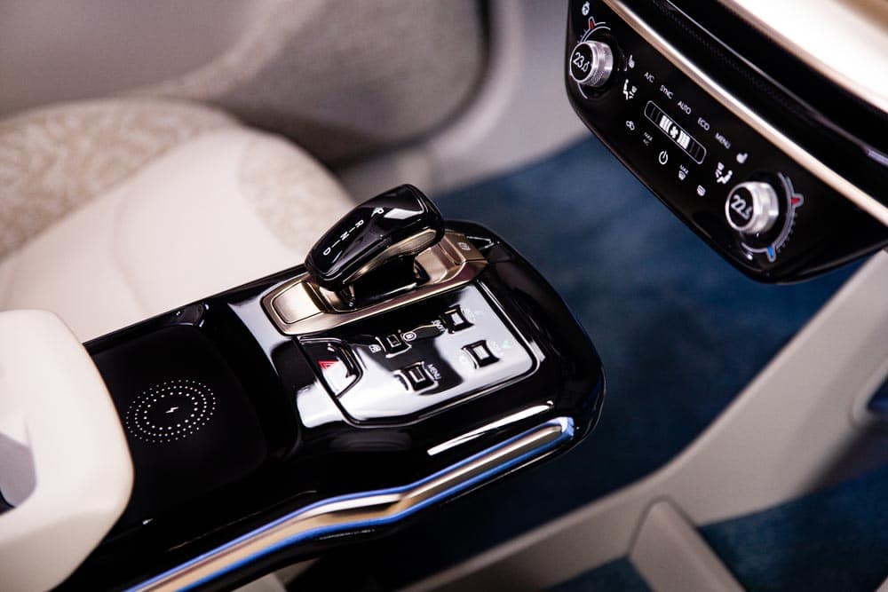 Całkiem futurystycznie wygląda za to konsola środkowa. W oczy rzuca się ogromna pusta przestrzeń, którą można wykorzystać na damską torebkę albo plecak. Będąc świadomym, że to tylko prototyp od razu trzeba jednak wskazać, że obecne miejsce na ładowanie indukcyjne telefonu jest niefortunne – przede wszystkim na możliwość dość łatwego spadku z konsoli.