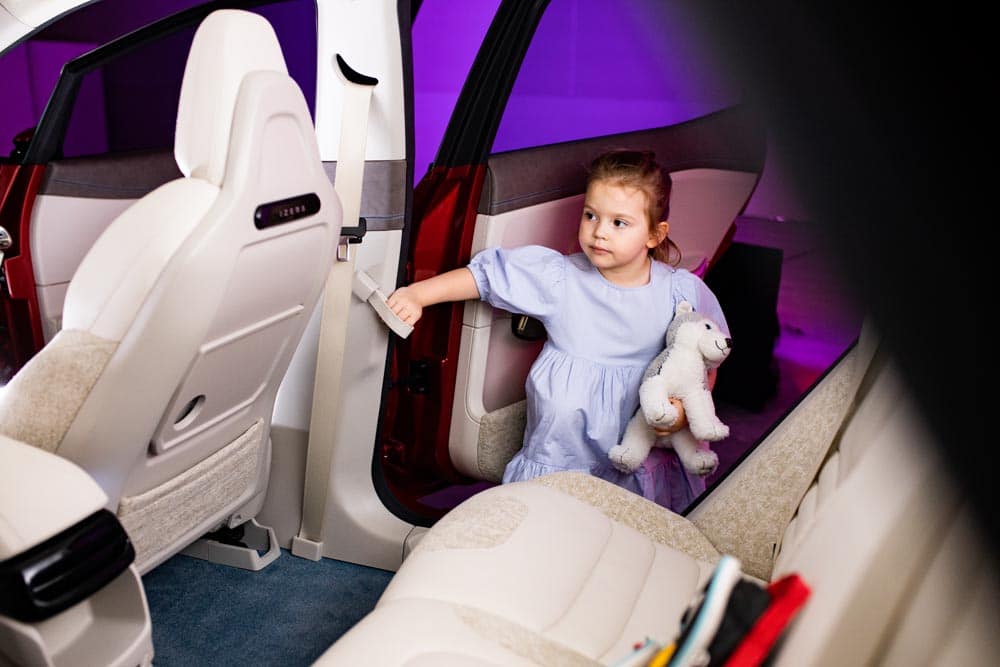 Z tyłu zwraca uwagę kilka praktycznych rozwiązań. To chociażby uchwyty dla dzieci ułatwiające wchodzenie do samochodu, magnesy np. do tabletu czy telefonu, a także rozkładane stoliki. To ostatnie rozwiązanie jest w zasadzie obecnie dość niespotykane w samochodach i kojarzy się głównie z autobusami. To jedna z nielicznych rzeczy, w których projektanci Izery ewidentnie nie poszli zgodnie ze światowym trendem. Z tyłu znajduje się także nawiew klimatyzacji czy gniazda USB.