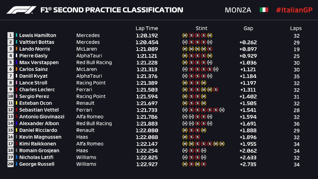 Piątek na torze Monza okazał się do bólu przewidywalny. Valtteri Bottas i Lewis Hamilton pewnie wygrali piątkowe treningi. Mercedes mając średnią przewagę na poziomie 0,8 sek. nad resztą stawki nie pozostawia złudzeń co do kwalifikacji. To kierowcy niemieckiego zespołu rozstrzygną między sobą walkę o pole position. Ich główny rywal – Max Verstappen w obu sesjach tracił do nich ok. sekundy.