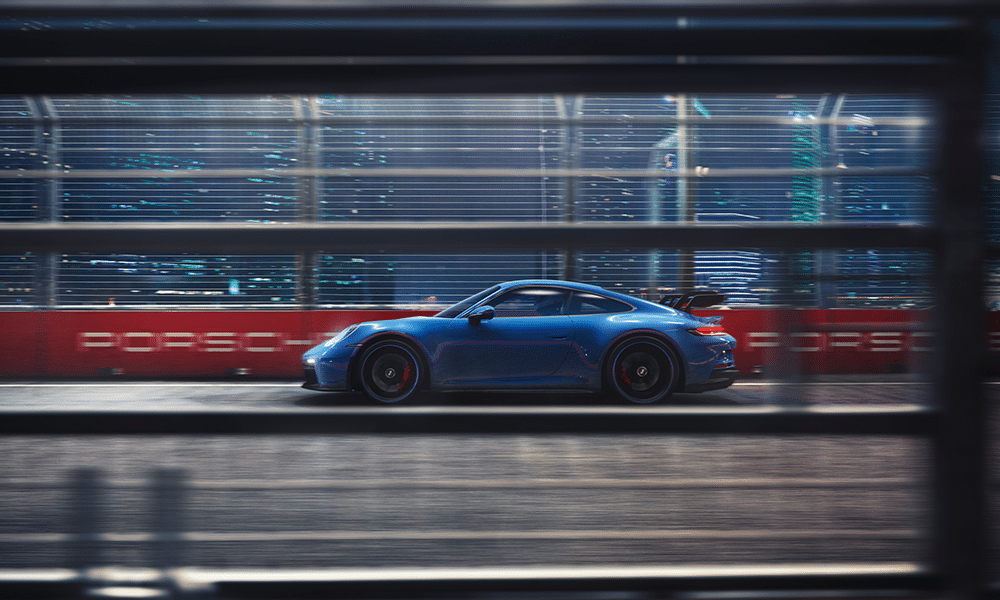 Wysoka prędkość maksymalna w tym przypadku nie była głównym celem twórców, a i tak auto rozpędza się do szalonych 320 km/h (318 km/h ze skrzynią PDK). W tym przypadku ważniejsze jest szybkie pokonywanie zakrętów na torze. Dlatego też w przypadku 911 GT3 ogromną rolę odgrywa zaawansowana aerodynamika, która generuje dużo większy docisk bez zauważalnego wpływu na współczynnik oporu powietrza. Efekt? 17 sekund szybciej od poprzednika na Nürburgringu i magiczna bariera 7 minut przebita – 6:59,927 (pełne okrążenie – 20,8 km).