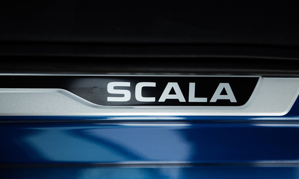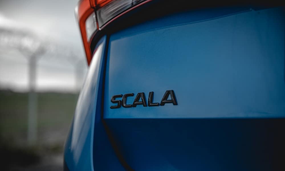 Scala mierzy 4,36 m długości, 1,79 m szerokości oraz 1,47 m wysokości, zaś jej rozstaw osi liczy 2,65 m. Korzysta ona z modułowej płyty MQB, na której oparto także pozostałe kompakty koncernu VAG. Wizualnie kompaktowa Scala, zwłaszcza w usportowionej wersji Monte Carlo, prezentuje się naprawdę dobrze. Odpowiednio dobrane proporcje, zgrabna i zwarta sylwetka oraz szereg specjalnych dodatków poprawiają i tak już pozytywny odbiór pojazdu. Do ciemnych akcentów wersji Monte Carlo w postaci przyciemnionych kloszy LED-owych przednich reflektorów, czarnej atrapy chłodnicy, 18-calowych felg o ciekawym wzorze oraz zachodzącej na klapę bagażnika szyby z czarnym napisem ŠKODA, świetnie pasował opcjonalny kolor Błękit Race Metalic (2400 zł). Czerń znajdziemy też w postaci listw okiennych, napisu SCALA na klapie bagażnika oraz w postaci tylnego spojlera dachowego.