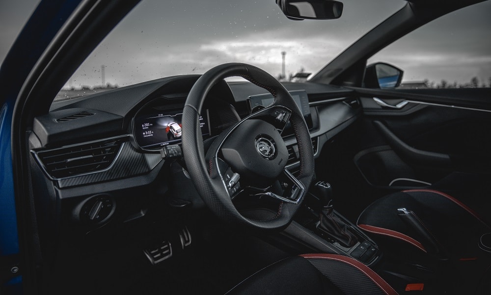 Pod względem wyposażenia testowana Scala Monte Carlo nie zawodziła, aczkolwiek paru rzeczy nam brakowało. Przede wszystkim przydałby się aktywny tempomat. Nie było też kamer 360 stopni oraz przedniej. To jednak nie odgrywało większej roli, bo Scala sama w sobie jest łatwa w manewrowaniu. Po tak bogatej i drogiej wersji spodziewalibyśmy się także przynajmniej półskórzanej tapicerki lub też alcantary. Brakowało nam też wejść USB-A. W aucie przewidziano bowiem tylko gniazda USB-C (po dwa z przodu i z tyłu), a także podłokietnika na tylnej kanapie. Plus za przesuwany podłokietnik z przodu. Poza tymi detalami cała reszta wyposażenia była w porządku.