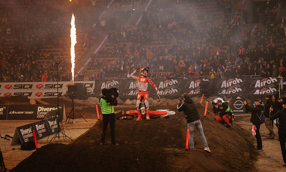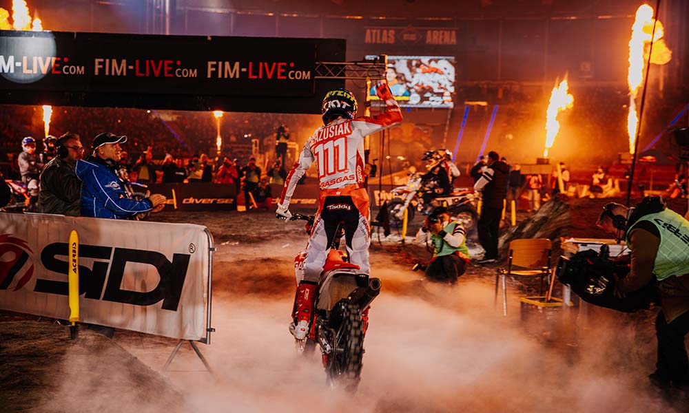 Od samego początku atmosfera w Atlas Arenie była wyjątkowa. Po niemal dwóch latach przerwy, najlepsi zawodnicy świata powrócili pod dach, by rywalizować o pierwsze punkty w sezonie na oczach głodnych widowiskowego ścigania kibiców. W każdej z trzech klas startowych mistrzostw świata FIM SuperEnduro mieliśmy mocnych biało-czerwonych reprezentantów, a doping fanów nie słabnął do ostatniej minuty.