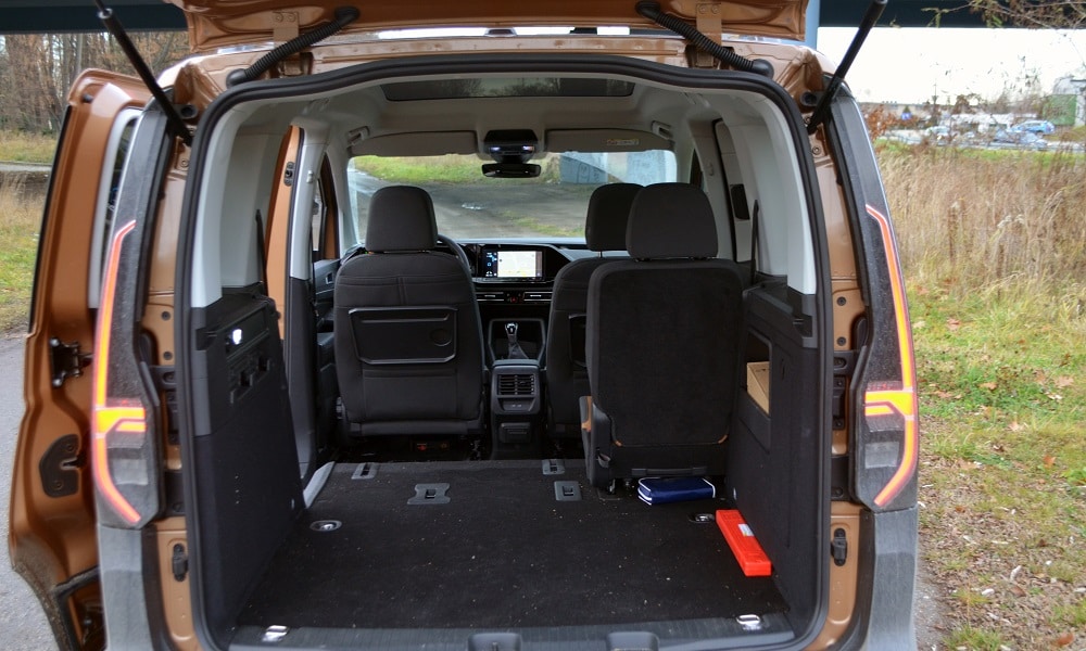 Przestrzeń bagażowa jest bardzo ustawna i estetycznie wykończona (co akurat w przypadku samochodu o użytkowym rodowodzie niekoniecznie jest zaletą). Tylne siedzenia składa się w proporcji 40:60, choć naszym zdaniem powinny być trzy osobne siedziska, oczywiście również wyjmowane. Sam proces wyjmowania i wkładania foteli i kanapy jest dość łatwy, ale dwuosobowa kanapa może być dość ciężka dla jednej osoby – to kolejny argument, oprócz większej funkcjonalności i możliwości aranżacji kabiny, za zastosowaniem trzech osobnych foteli. Po wyjęciu siedzisk tylnego rzędu mamy wielką przestrzeń bagażową, mogącą pomieścić 2556 l bagażu. Niestety załadowanie przedmiotów o długości 2 metrów może być problematyczne, o czym przekonaliśmy się na własnej skórze. Za to rzeczy do 1,8 m długości powinny się zmieścić. Ładowność wynosi 525 kg, zaś siła uciągu 1500 tony.