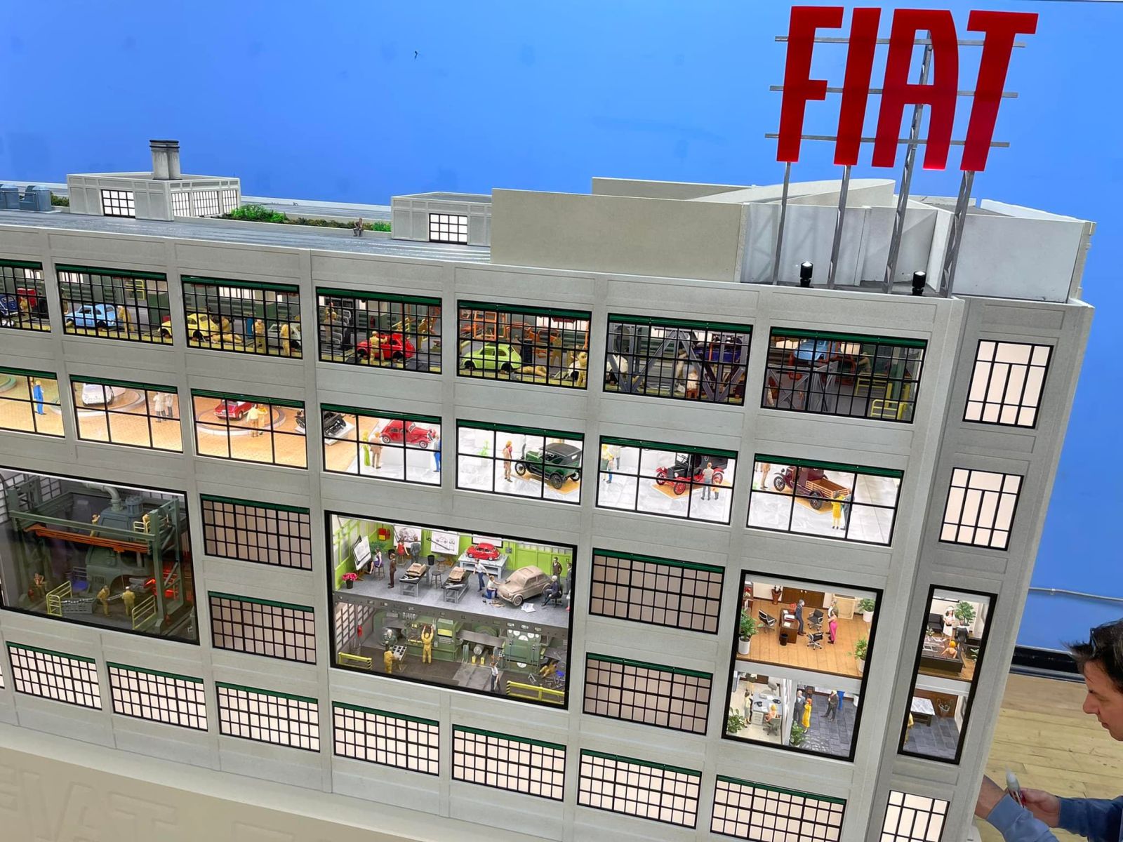 Rzecz jasna o półśrodkach nie było mowy i powstało kolejne wyrafinowane dzieło. Według założyciela firmy, Davida Beattie, jej budowa trwa aż dwa lata, podczas których przywiązywano maksymalną wagę nawet do najdrobniejszych szczegółów. W makiecie znajdziemy więc nie tylko wspomniany wcześniej tor testowy na dachu, ale także linie montażowe, showroom, biura czy cokolwiek innego, co się tam wówczas znajdowało. Jest aż 500 miniaturowych Fiatów, którymi można też jeździć po torze. Całość dopełnia ogrom ręcznie zdobionych figurek i wiele ciekawych detali.