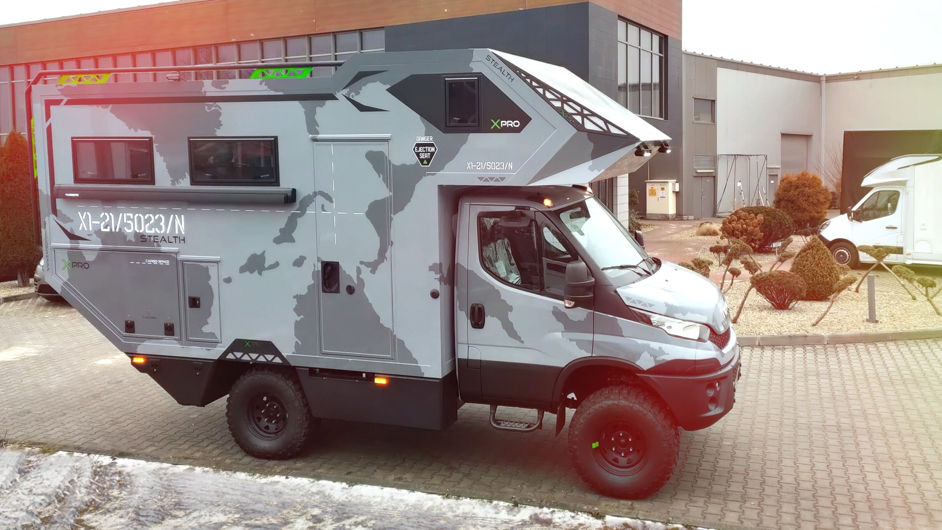 Design jaki jest, każdy widzi. Producent ewidentnie inspirował się samochodami bojowymi, myśliwcami czy też czołgami. Na jego stronie mowa jest o „bezkompromisowym” wyglądzie i nie sposób się z tym nie zgodzić. Ta bestia powstała na bazie Iveco Daily 4×4.