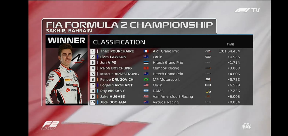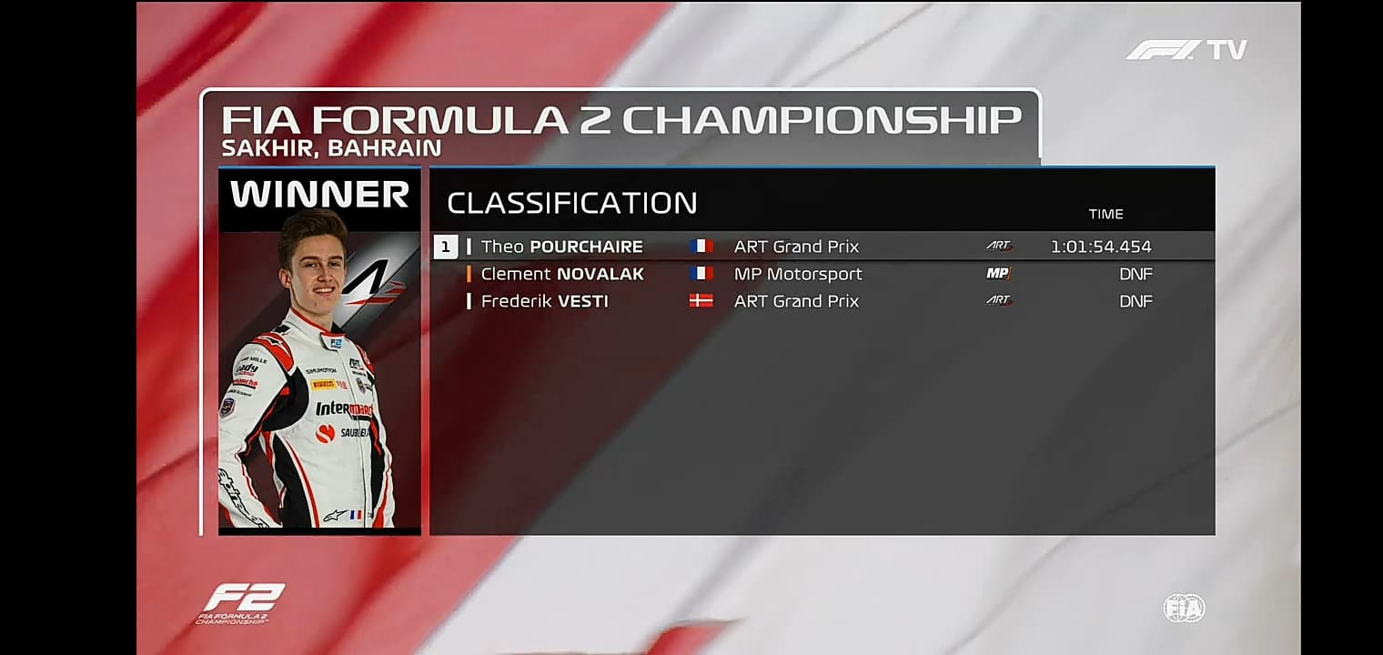 Dzień 20 marca 2022 r. zespół ART zapamięta na długi czas. Po wygranej Victora Martinsa w wyścigu głównym F3 oraz fenomenalnej jeździe jego kolegów z zespołu, wyścig główny F2 także wygrał reprezentant Francuskiego zespołu. Wyścig nie zaczął się dla Pourchaire’a najlepiej – kierowca akademii Saubera po starcie z drugiego pola spadł na czwartą pozycję. Już na drugim okrążeniu na torze pojawił się Safety Car, wywołany przez drugiego kierowcę ART, Frederika Vestiego. Po restarcie Pourchaire przesunął się na trzecią pozycję, a następnie świetnie zadziałała strategia przyjęta przez zespół ART. Po szybkim pit stopie na 14. okrążeniu i fatalnym pit stopie Juriego Vipsa przesunął się przed Estończyka. Okrążenie później wyszedł przed Jacka Doohana.
