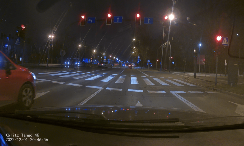Xblitz Tango 4K wyposażono w obiektyw szerokokątny, który obejmuje aż 170 stopni. Równie ważnym aspektem jest rozdzielczość – w tym przypadku producent informuje o standardzie Ultra HD (2592×1944 w 30 kl./s). Dodatkowo możemy wybrać kodowanie wysokie lub niskie – to ostatnie może być przydatne w wypadku starszych smartfonów. Za dnia obraz jest dobry i bardzo ostry. Nocą bywa trochę gorzej, ale wciąż jest to akceptowalny poziom. Wszystkie tablice i znaki są dobrze widoczne. Na minus – flary wydobywające się ze źródeł światła. To jednak bolączka większości wideorejestratorów.